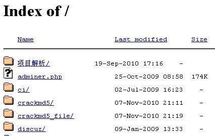 服务器可显示文件目录列表,这个是不推荐的,因为可能有些文件不希望被显示在web网站上,网站上不存在这些文件的链接。类似下图所示