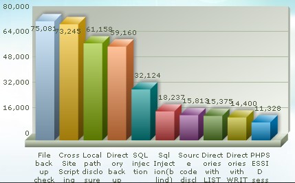 报告中的漏洞就上面4种了,关于更多的漏洞不妨可以去 http://www.iiscan.com/ 的主页,点击"强大功能"看那个fusioncharts的报表,列了各种漏洞,点击各自的能进入查看具体描述。
