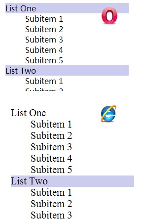 opera下list one与list two都有背景的,但是IE6下则第一个没有背景