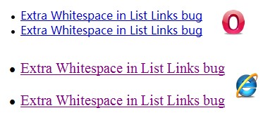 <li><a href="#" style="display:block;">Extra Whitespace in List Links bug</a></li>