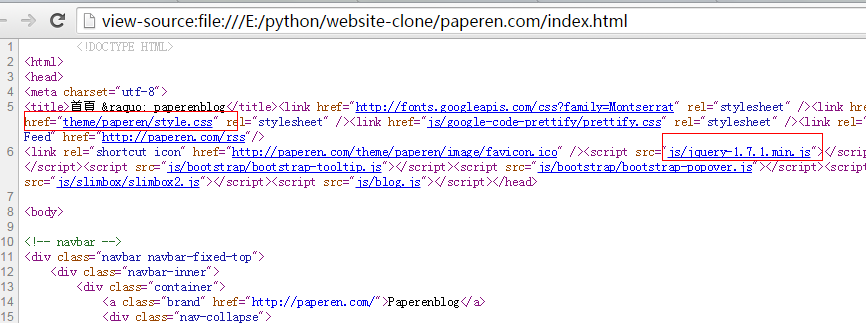 查看源码可以看到css与js、还有图片(包括css里面的background路径)均已修改为本地相对路径