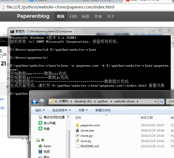 默认会在py代码目录生成站点文件夹,你可以通过-d参数调整生成的目录