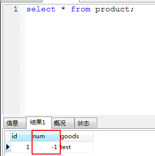 $id = 1; // 锁 lock('product', 1); $sql = "select * from product where id='{$id}'"; $query = mysqli_query($conn, $sql); $data = mysqli_fetch_array($query, MYSQLI_ASSOC); if ( $data['num'] <= 0 ) throw new Exception('product sold out'); sleep(1); $sql = "update product set num=num-1 where id='{$id}'"; mysqli_query($conn, $sql); echo 'ok'; // 解锁 unlock('product'); function lock($table, $type = 0) { global $conn; $op = ( $type == 0 ) ? 'READ' : 'WRITE'; $sql = "LOCK TABLE `{$table}` {$op}"; mysqli_query($conn, $sql); } function unlock($table) { global $conn; $sql = "UNLOCK TABLES"; mysqli_query($conn, $sql); }