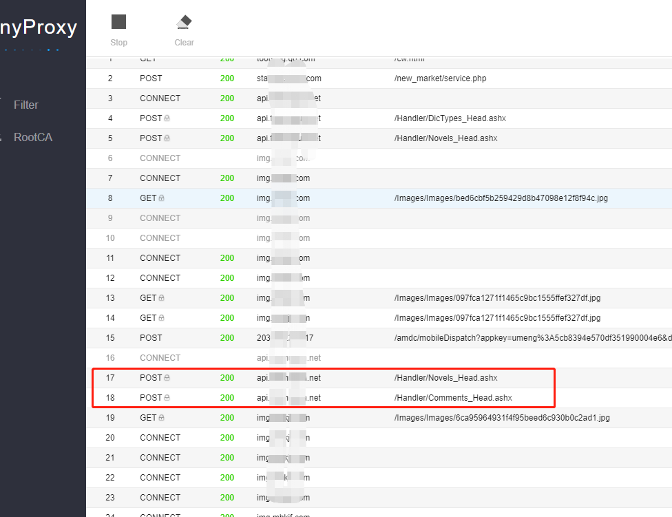代理捉包,无论怎样一直没看到有请求接口的记录(只有请求图片的请求),很是奇怪,所以之前爬取的思路是通过模拟器+appium来弄的,效率甚是慢而且容易中断